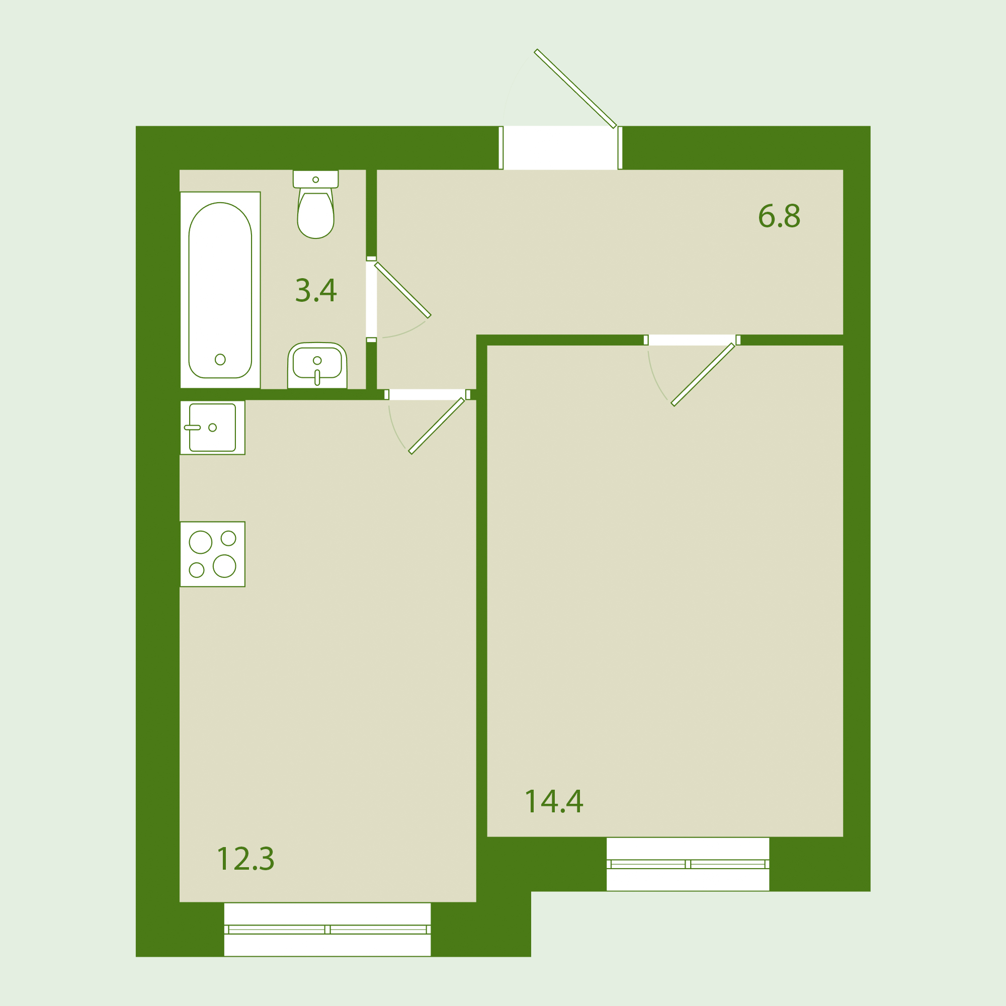Общая площадь: 36.90 м2