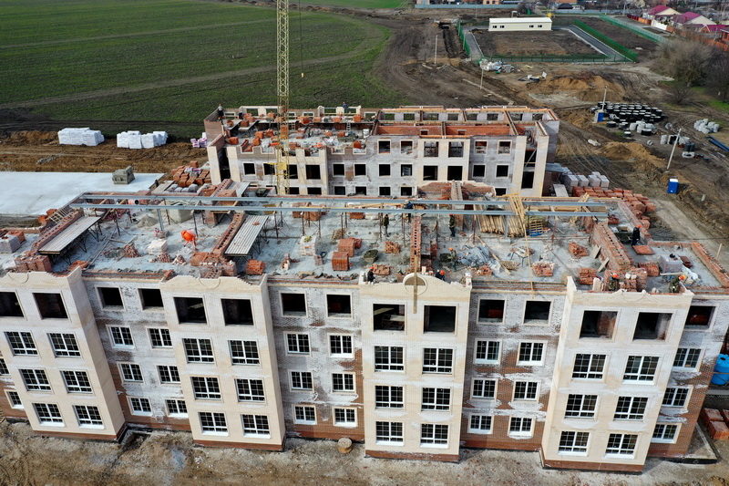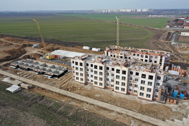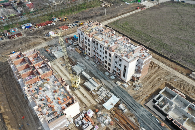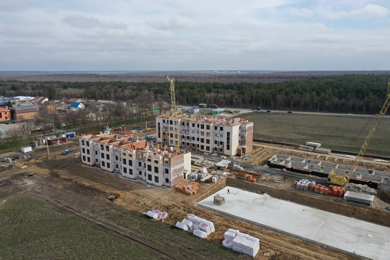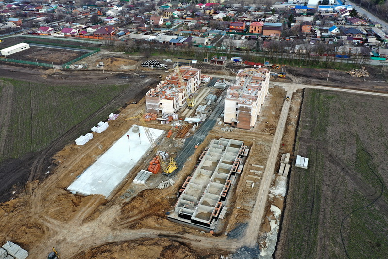 Четвертый дом - ведется монтаж блоков цокольного этажа.