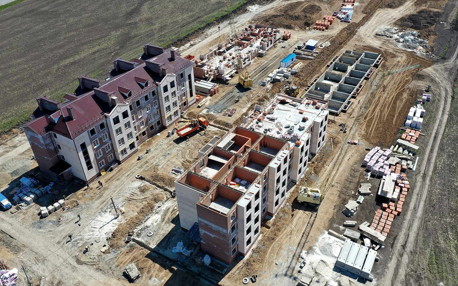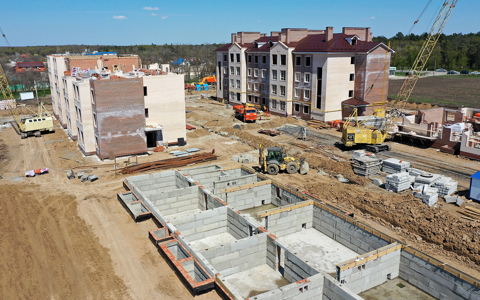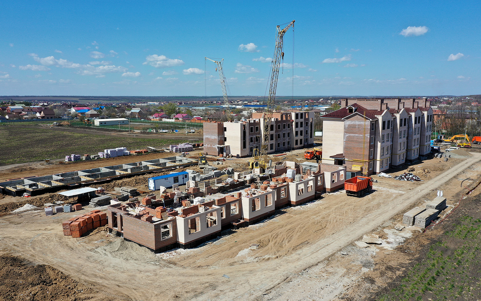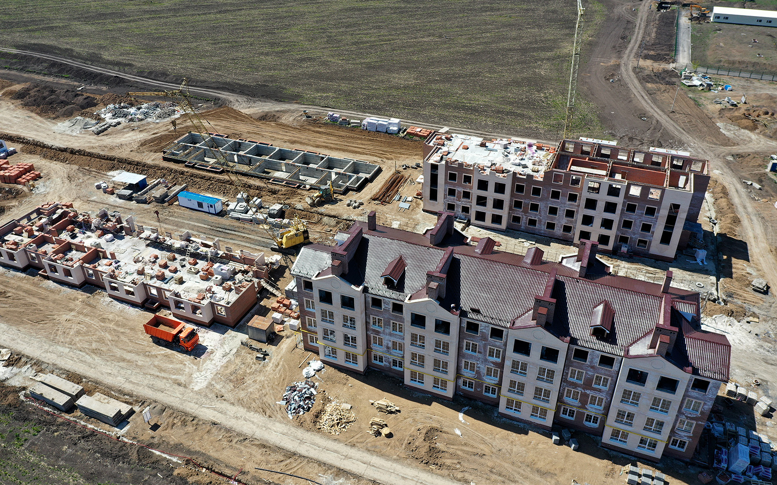 В первом доме завершены кладочные и монтажные работы, установлена кровля, ведутся внутренние электромонтажные работы, разводка электрических сетей по этажам, устройство водопроводных и канализационных труб и другие технические работы.