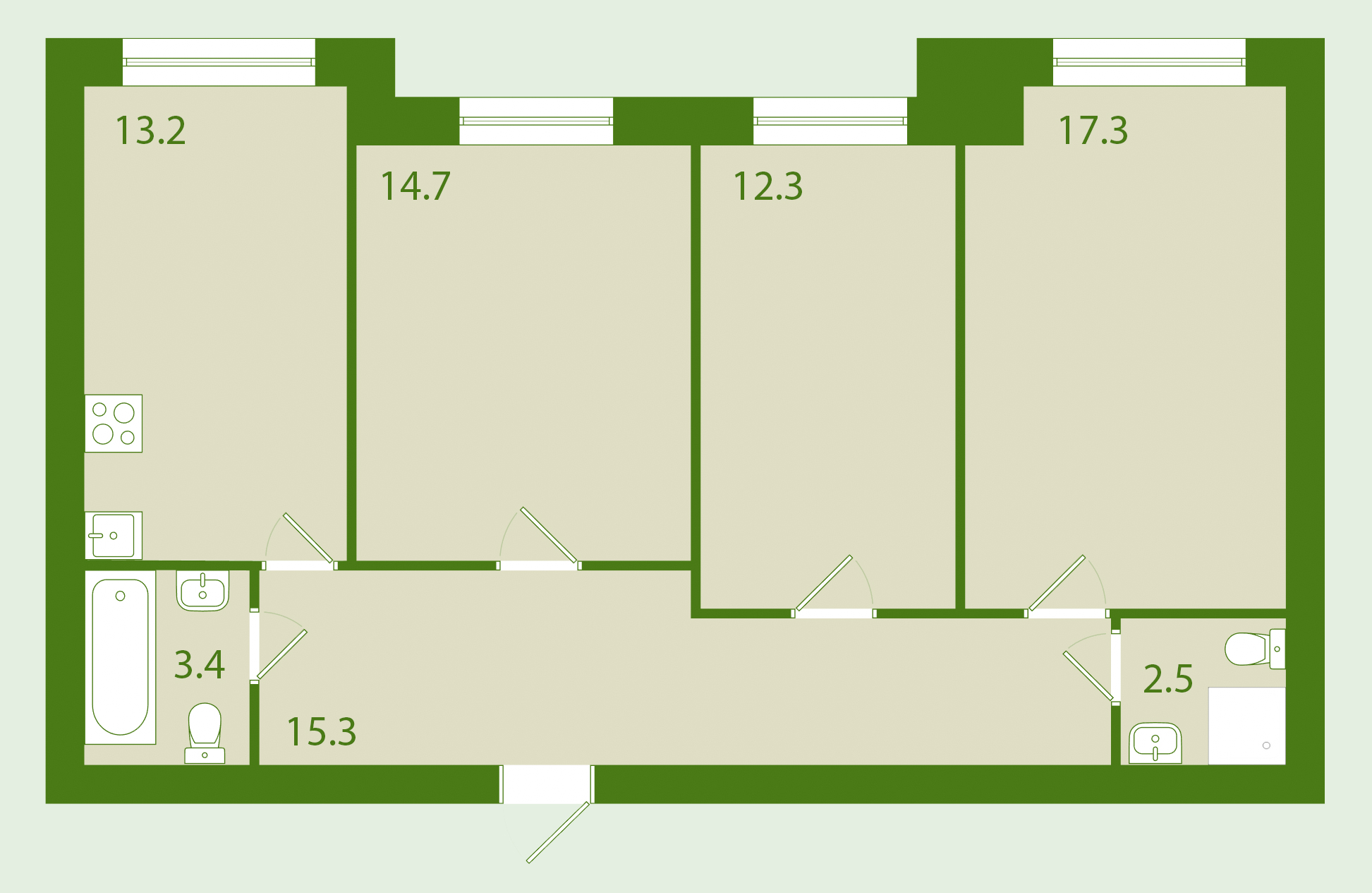 Общая площадь: 79.00 м2